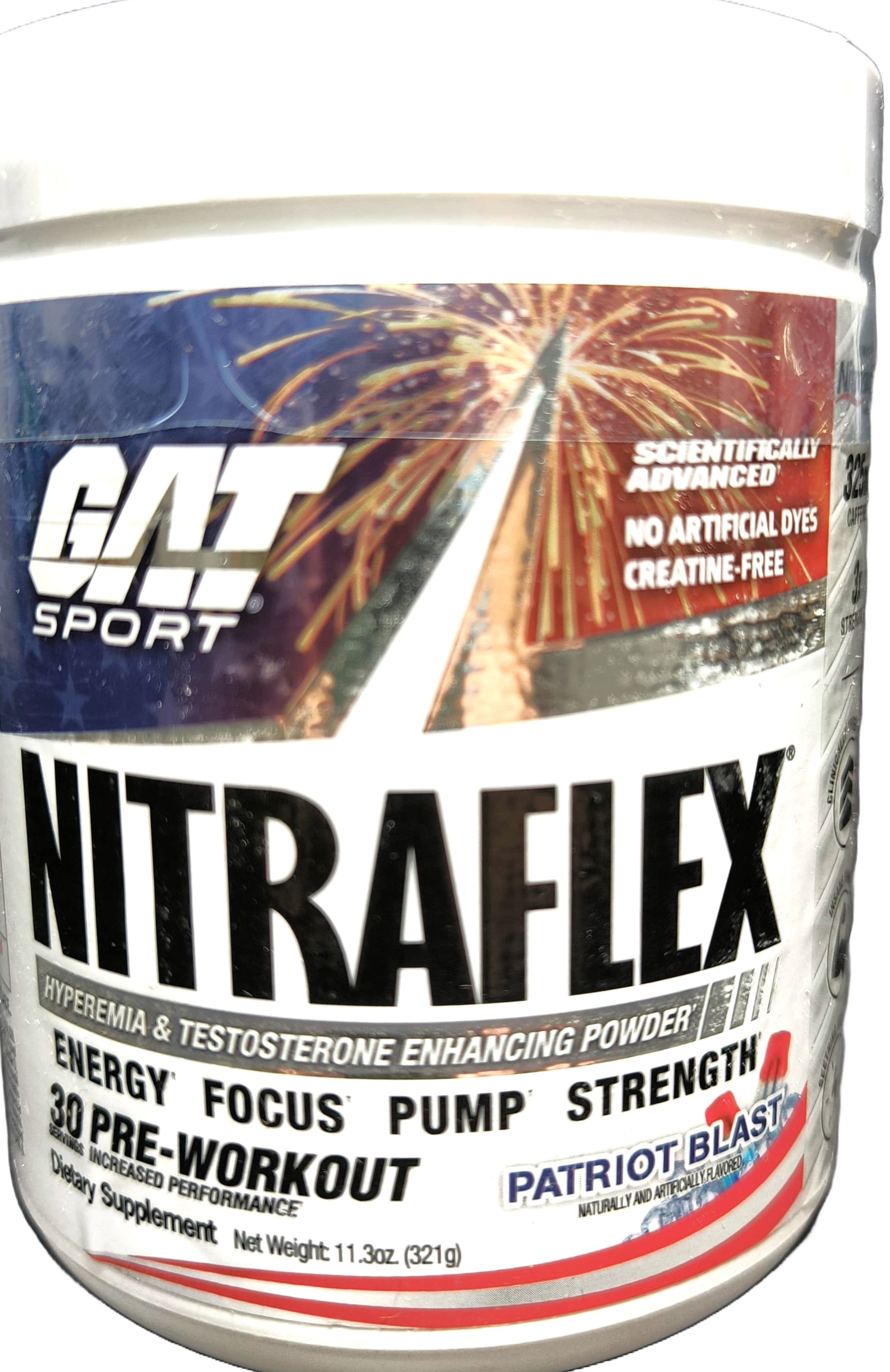 Desata a la bestia que llevas dentro con GAT SPORT NITRAFLEX PRE-WORKOUT! Esta fórmula de nueva generación, en un envase de 10.6 oz (300g) que te ofrece 30 servicios, ha sido diseñada para ser el pre-entreno legal más potente del mundo. Prepárate para aniquilar tus límites, regenerar nueva masa muscular a un ritmo acelerado y experimentar una intensidad sin igual.