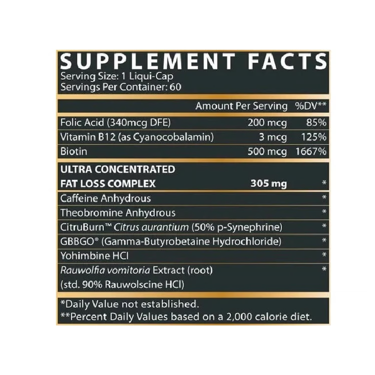 La Cafeína se ha utilizado ha sido utilizada durante centenares de años como un estimulante del sistema nervioso, potenciando la capacidad de concentración y el rendimiento deportivo. Es el principal ingrediente de los Termogénicos, y en el caso de Lipo 6 Black Hers Ultra Concentrate, ha sido combinada con ingredientes como Vitaminas del grupo B, guaraná, jengibre, capsaicina y teobromina, que potencian sus cualidades para acelerar el metabolismo.