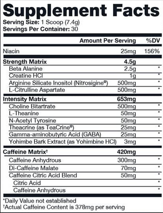 Energía que Golpea Inmediatamente: Con una carga de 375 mg de cafeína y la adición de Yohimbe, sentirás una energía inmediata y poderosa que te pondrá en marcha al instante.